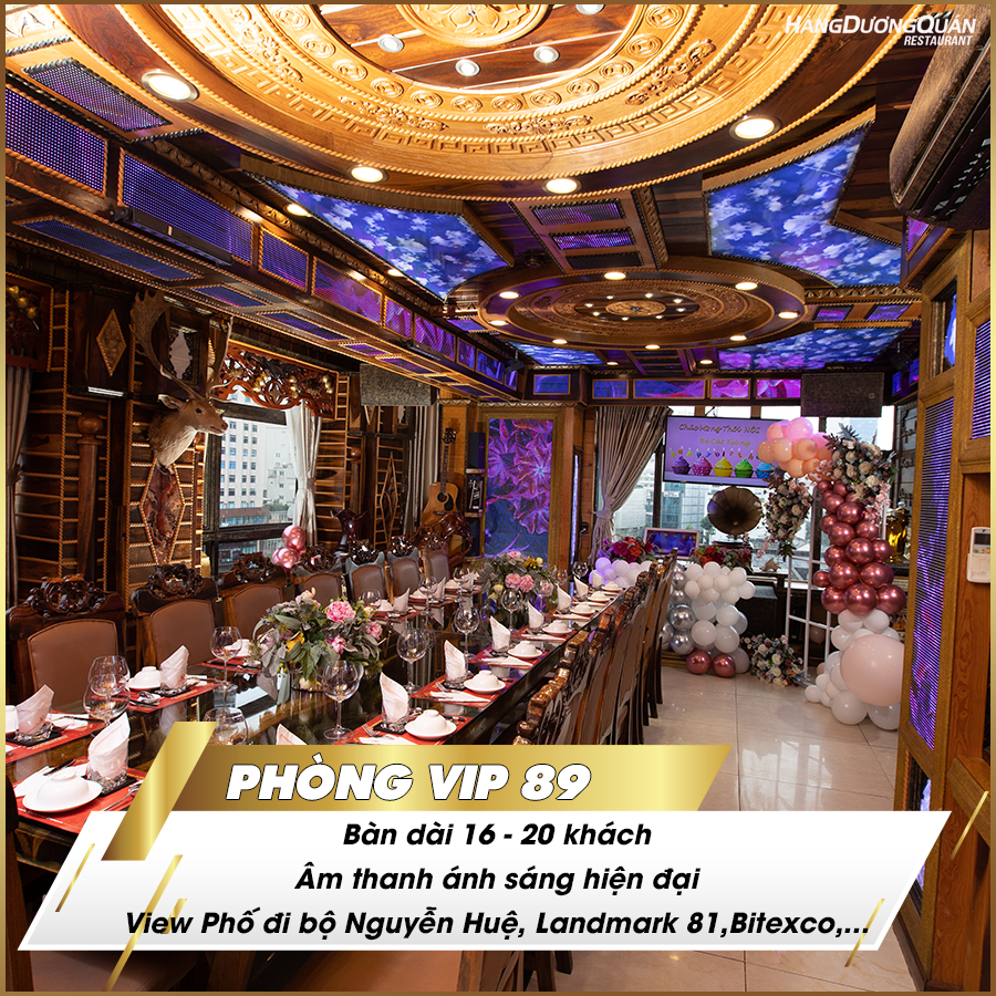 * VIP 89: Bàn dài 16- 20 Khách - Có Âm Thanh ánh sáng- Có wc trong phòng - Có View Hướng phố đi bộ Nguyễn Huệ, Ngô Đức Kế, Landmark 81, Đồng Khởi, Sông Sài Gòn, Cầu Thủ Thiêm 2, Bitexco.