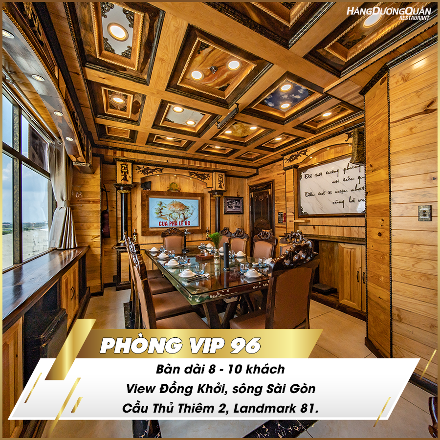 * VIP 96: Bàn dài 8-10 Khách - Có wc trong phòng - View Hướng Đồng Khởi, Sông Sài Gòn, Cầu Thủ Thiêm 2, Landmark 81.